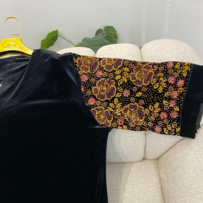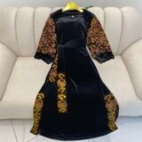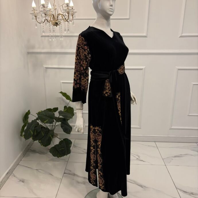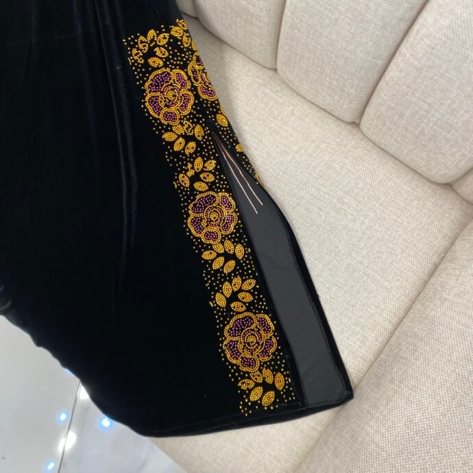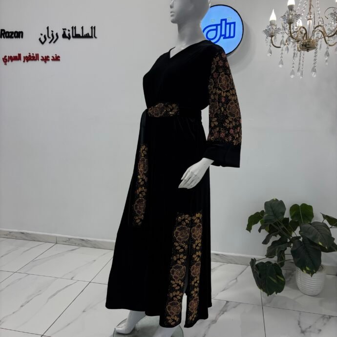 قفطان استراس زهري قطيفة رويال (كود 219)